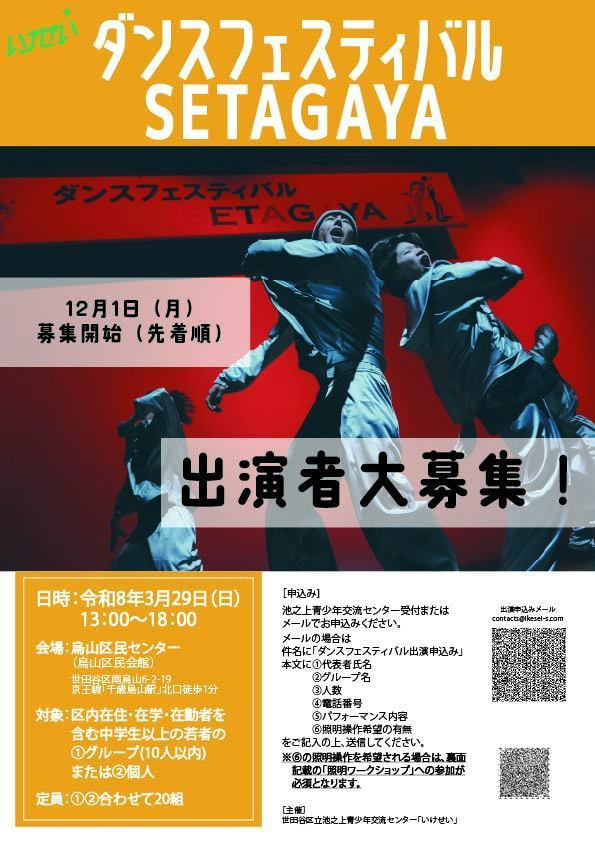 12月1日(月)よりダンスフェスティバルSETAGAYAの出演申込みを開始します(先着順)