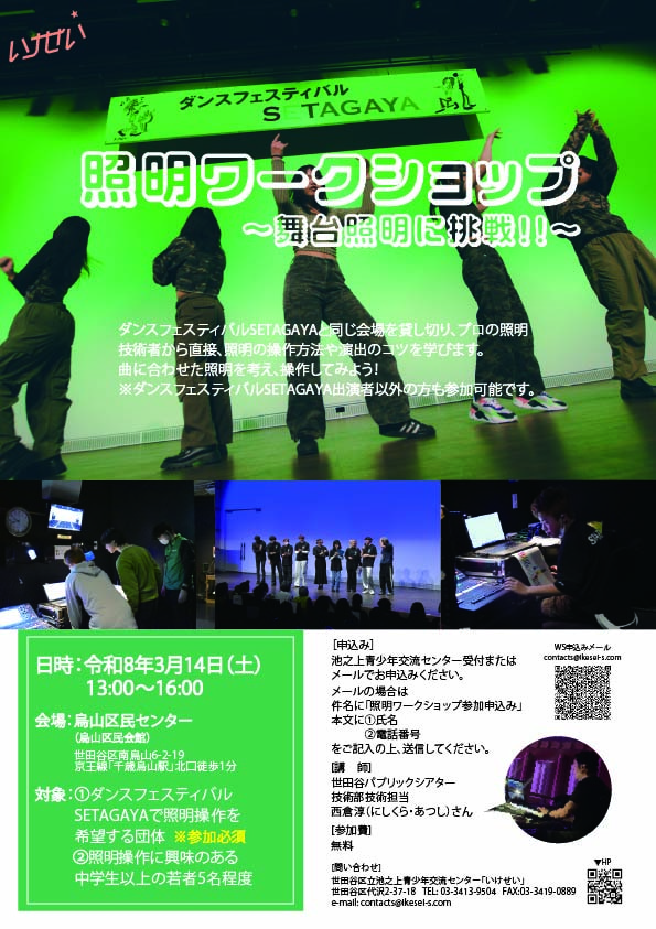 対 象:①ダンスフェスティバルSETAGAYAで照明操作を希望する団体 ※参加必須