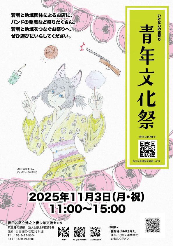 当日、入口にある「青年文化祭 入館用紙」に記入し、受付へ提出してください。